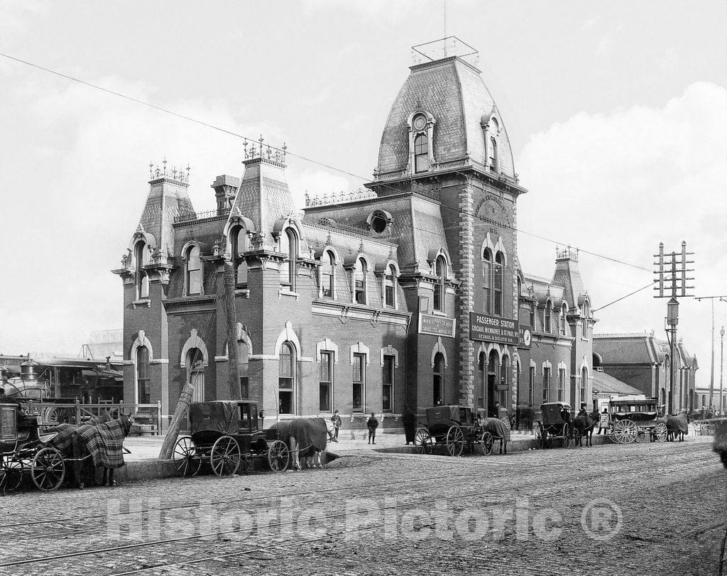 Minneapolis Historic Black & White Photo, Outside the C.M. & St. Paul Railway Depot, c1876 -