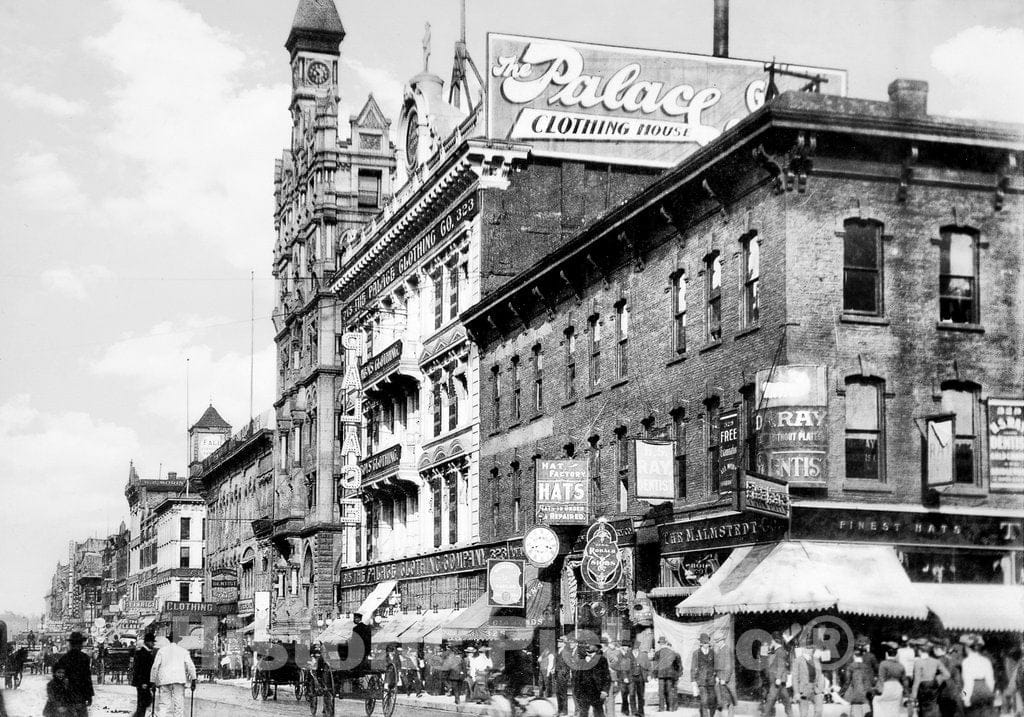 Minneapolis Historic Black & White Photo, The Palace Clothing Store and the Warner Block Building, c1902 -