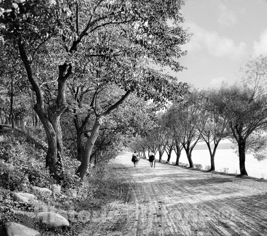 Minneapolis Historic Black & White Photo, Riding Along Calhoun Boulevard, c1908 -