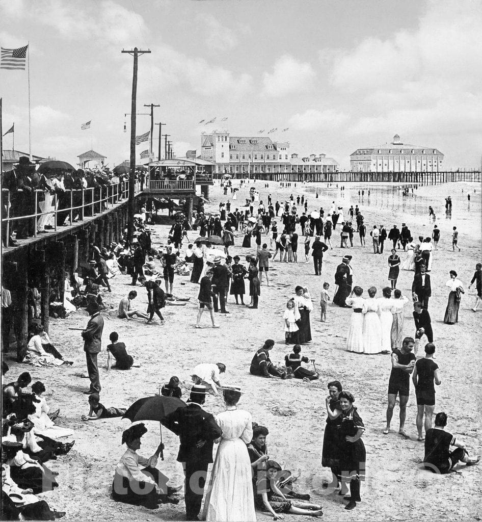 New Jersey Historic Black & White Photo, Along the Shore to the New Pier, Wildwood, c1905 -