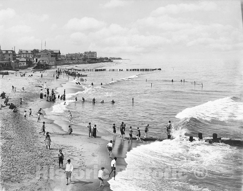 New Jersey Historic Black & White Photo, Looking Down the Shoreline, Long Branch, c1901 -
