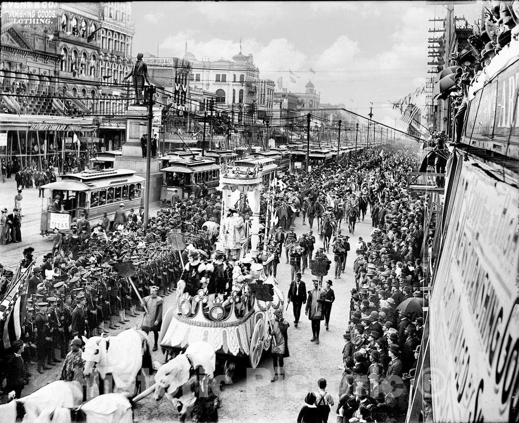 New Orleans Historic Black & White Photo, The Annual Mardi Gras Parade, Canal Street, c1900 -