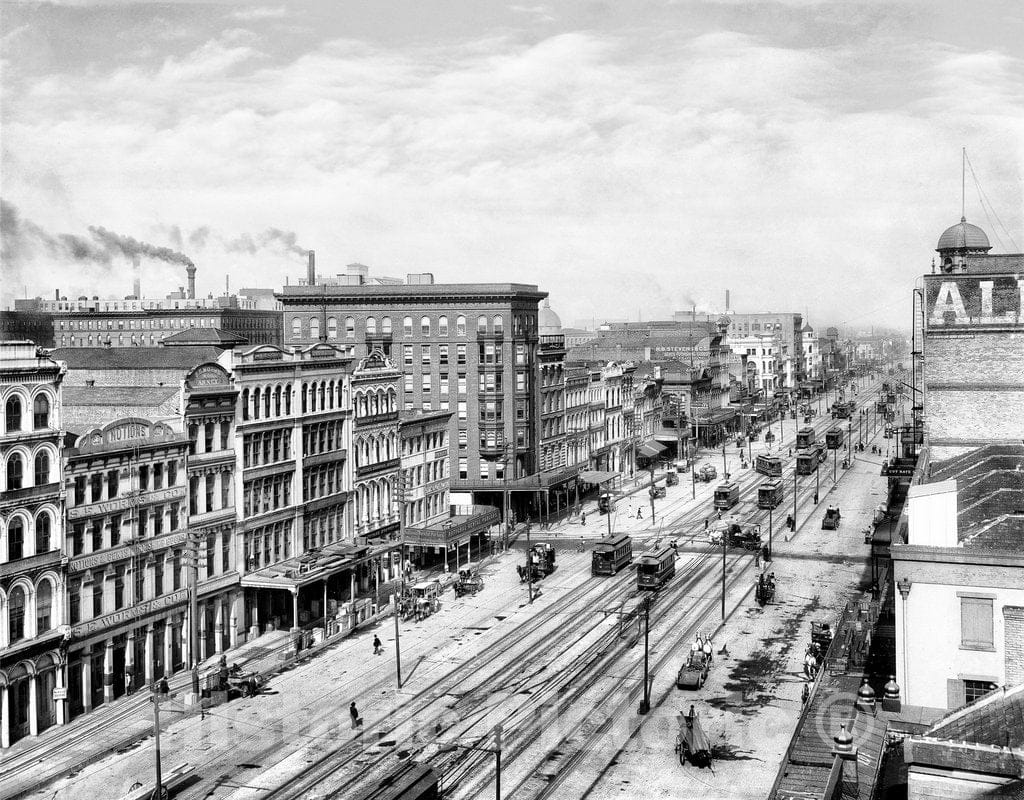 New Orleans Historic Black & White Photo, Canal Street from Above, c1903 -