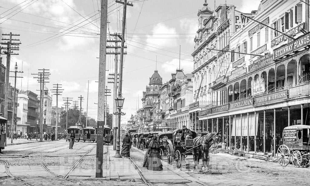 New Orleans Historic Black & White Photo, Canal Street from the Clay Monument, c1890 -