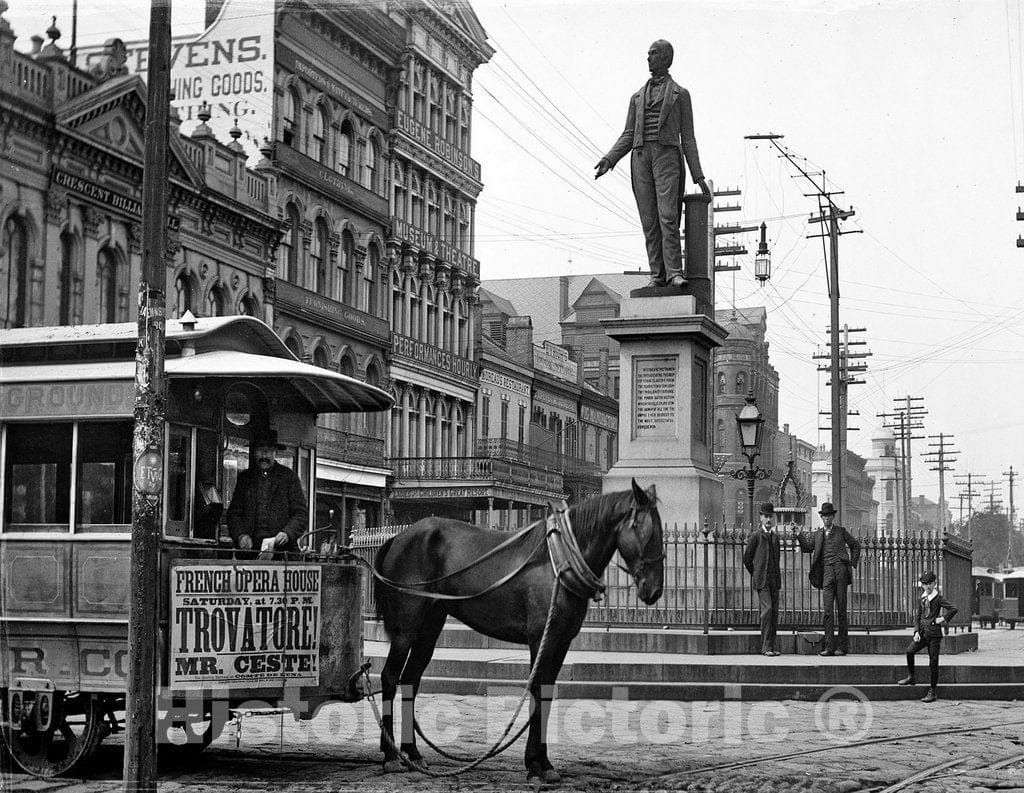 New Orleans Historic Black & White Photo, The Clay Monument on Canal Street, c1890 -