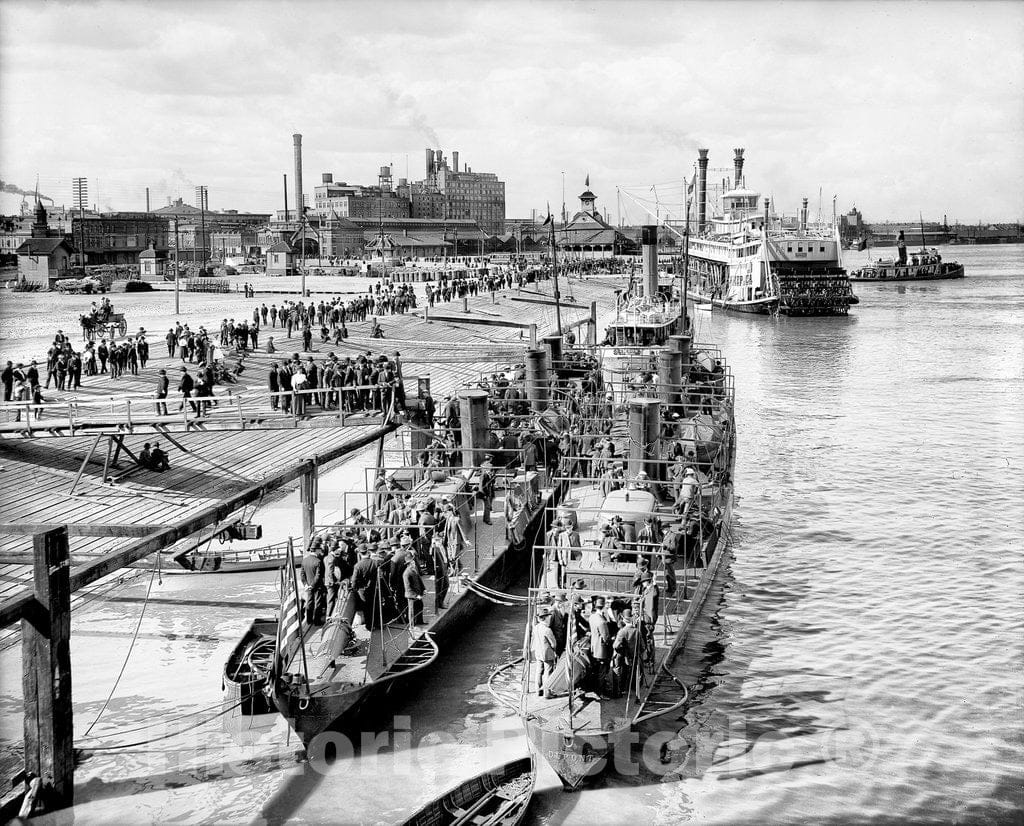 New Orleans Historic Black & White Photo, Crowds Visiting the Torpedo Boats, c1906 -