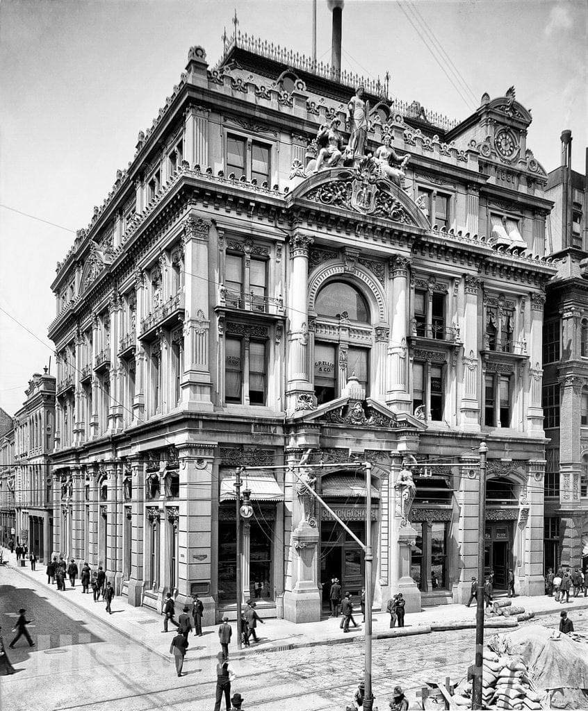 New Orleans Historic Black & White Photo, Outside the Cotton Exchange, c1903 -