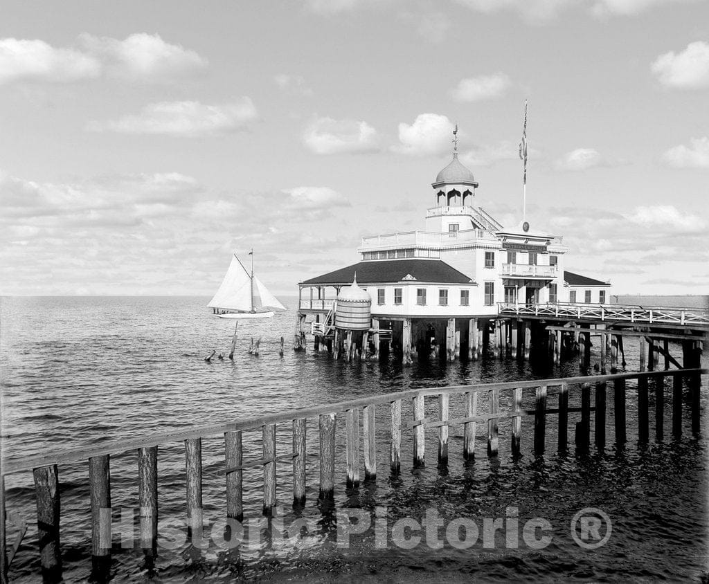 New Orleans Historic Black & White Photo, Southern Yacht Club, West End, c1895 -