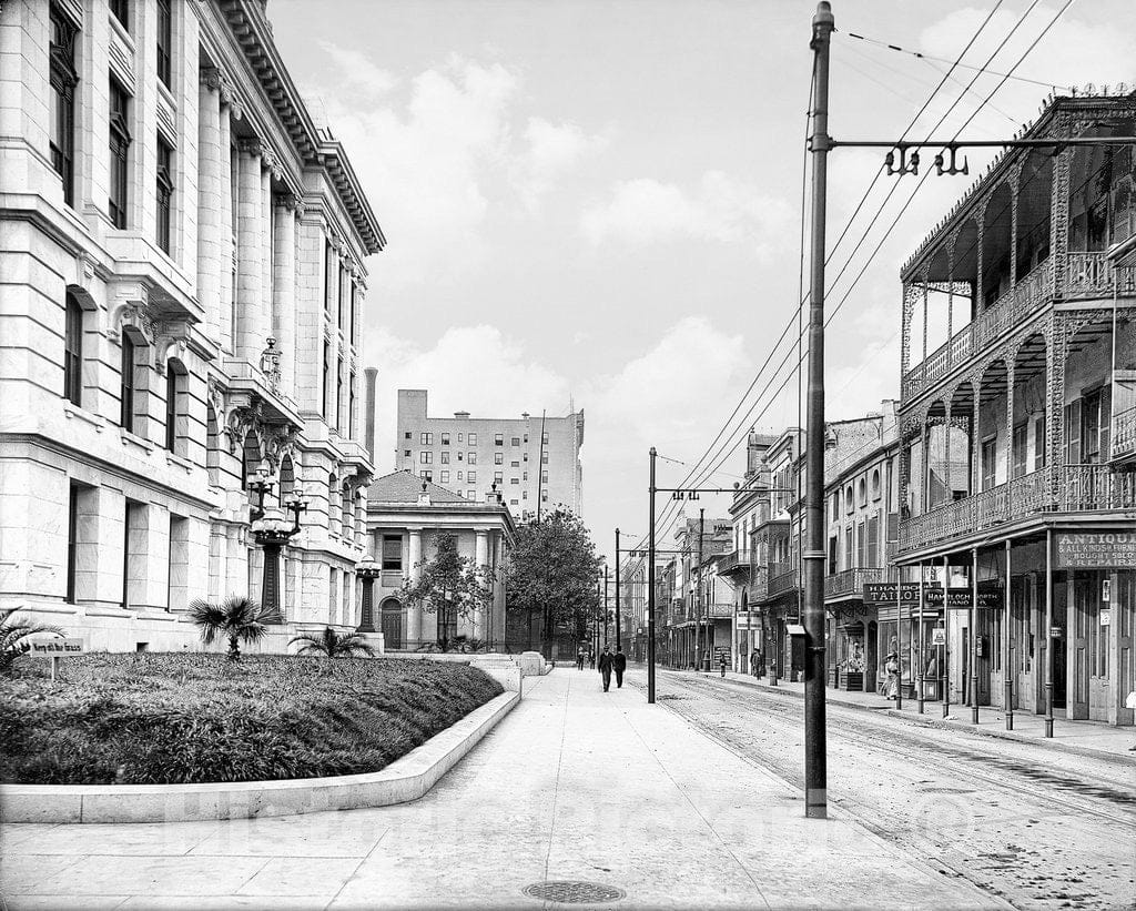 New Orleans Historic Black & White Photo, View from the Courthouse on Royal Street, c1910 -