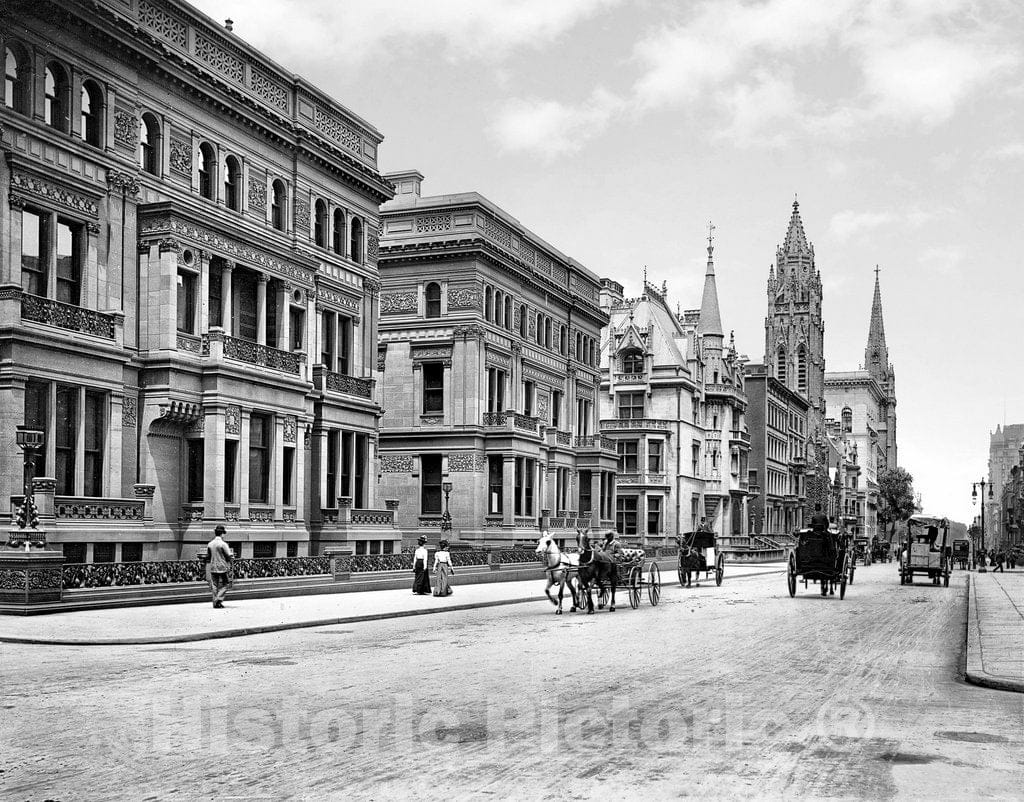 • .New York City Historic Black & White Photo, Early Traffic on Fifth Avenue at 51st Street, c1905 -