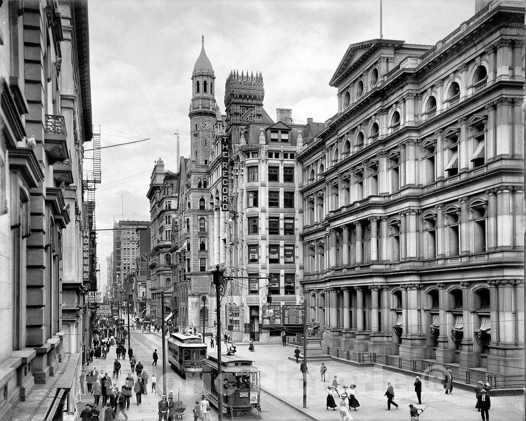 Philadelphia Historic Black & White Photo, Chesnut Street at the Old Post Office, c1904 -