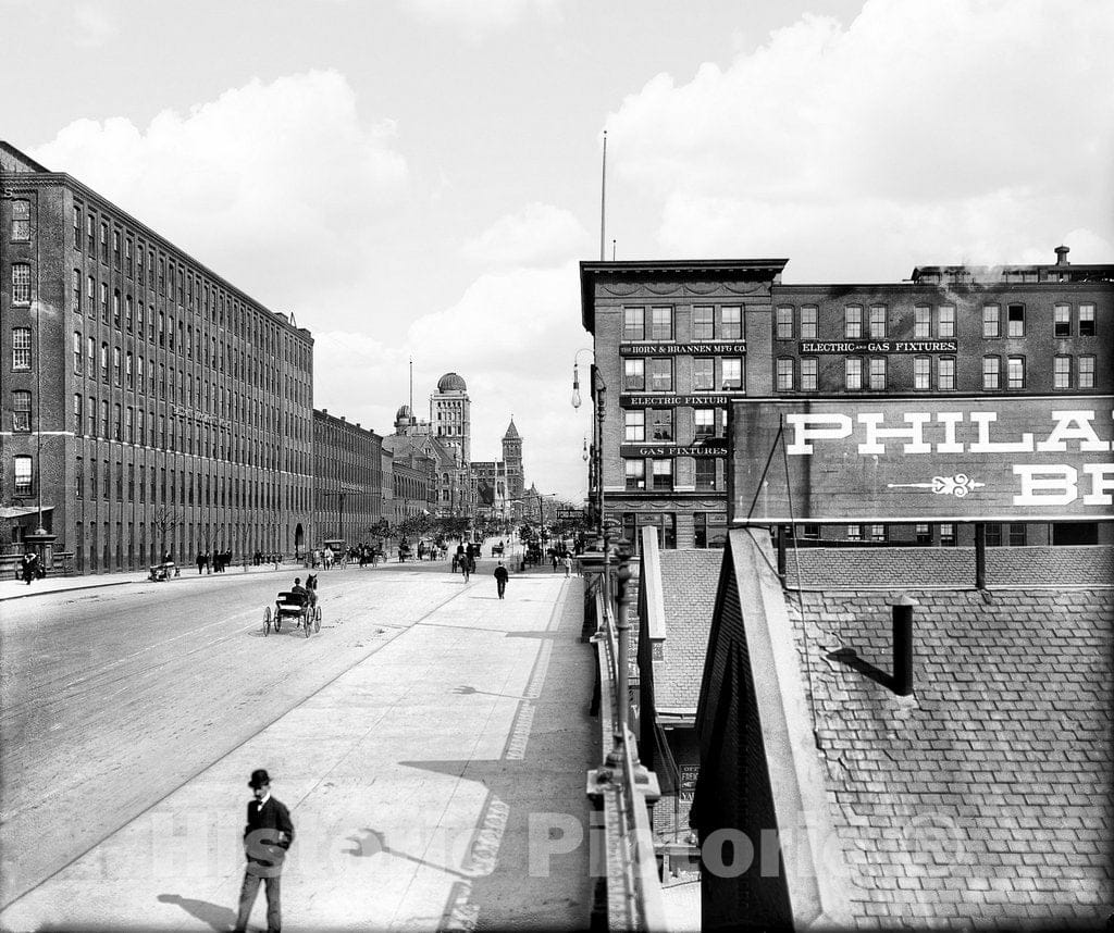 • Philadelphia Historic Black & White Photo, Spring Garden Street at Baldwin Locomotive Works, c1904 -