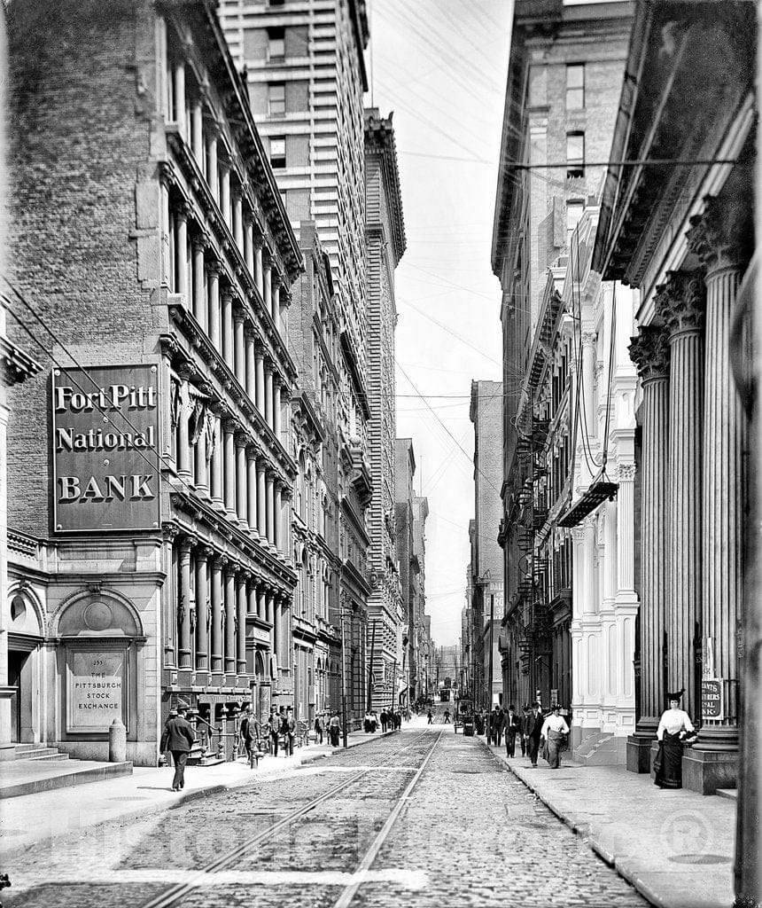 Pittsburgh Historic Black & White Photo, The Banks of Fourth Avenue, c1905 -