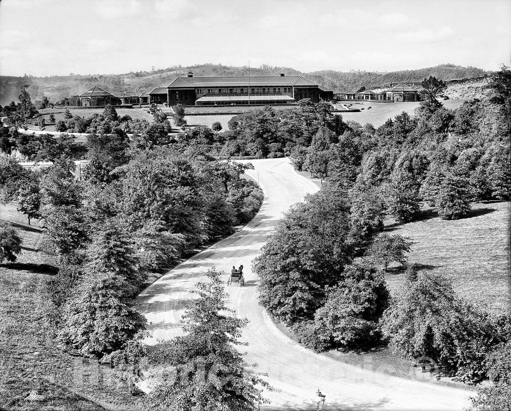 Pittsburgh Historic Black & White Photo, The Road Winding Through Highland Park, c1904 -