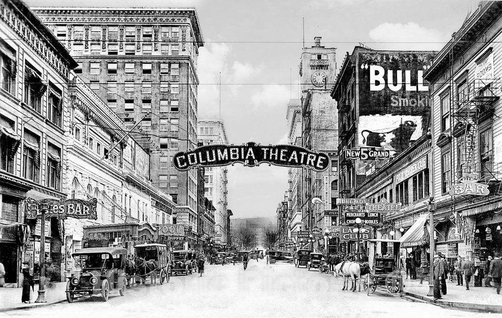 Portland Historic Black & White Photo, Theatres on Southwest Sixth Avenue, c1914