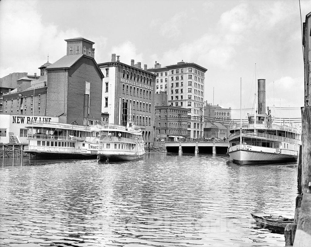 Providence Historic Black & White Photo, Steamers on the Providence River, c1906 -