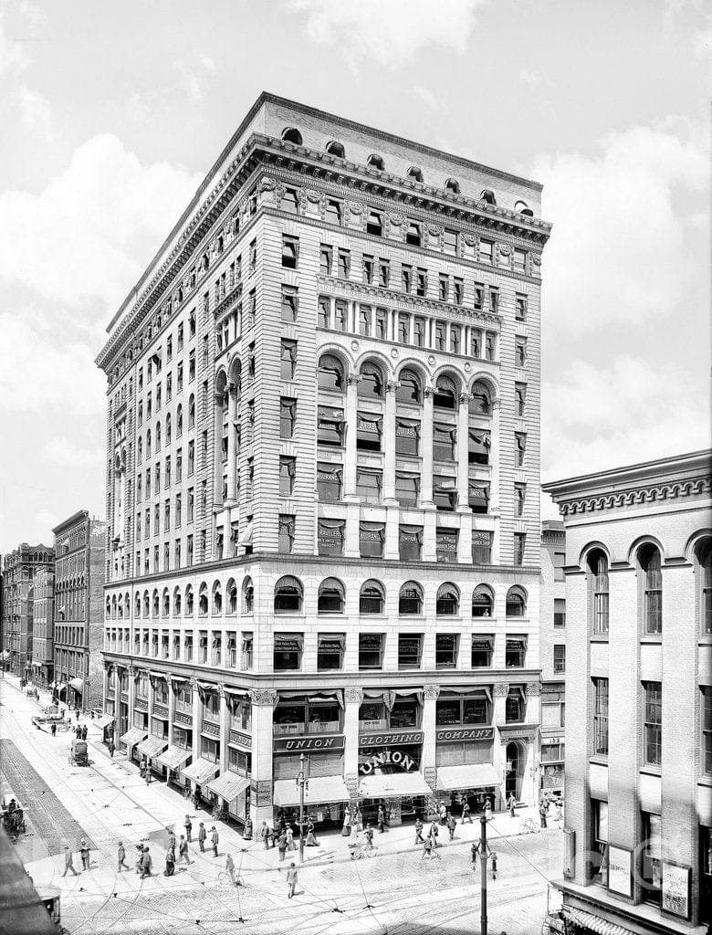 Rochester Historic Black & White Photo, The Granite Building on East Main Street, c1904 -