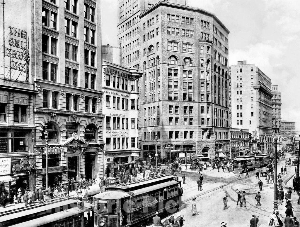 San Francisco Historic Black & White Photo, The Chronicle Building at Market and Third Streets, c1905 -