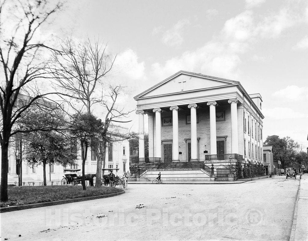 Savannah Historic Black & White Photo, Christ Church on Johnson Square, c1917 -