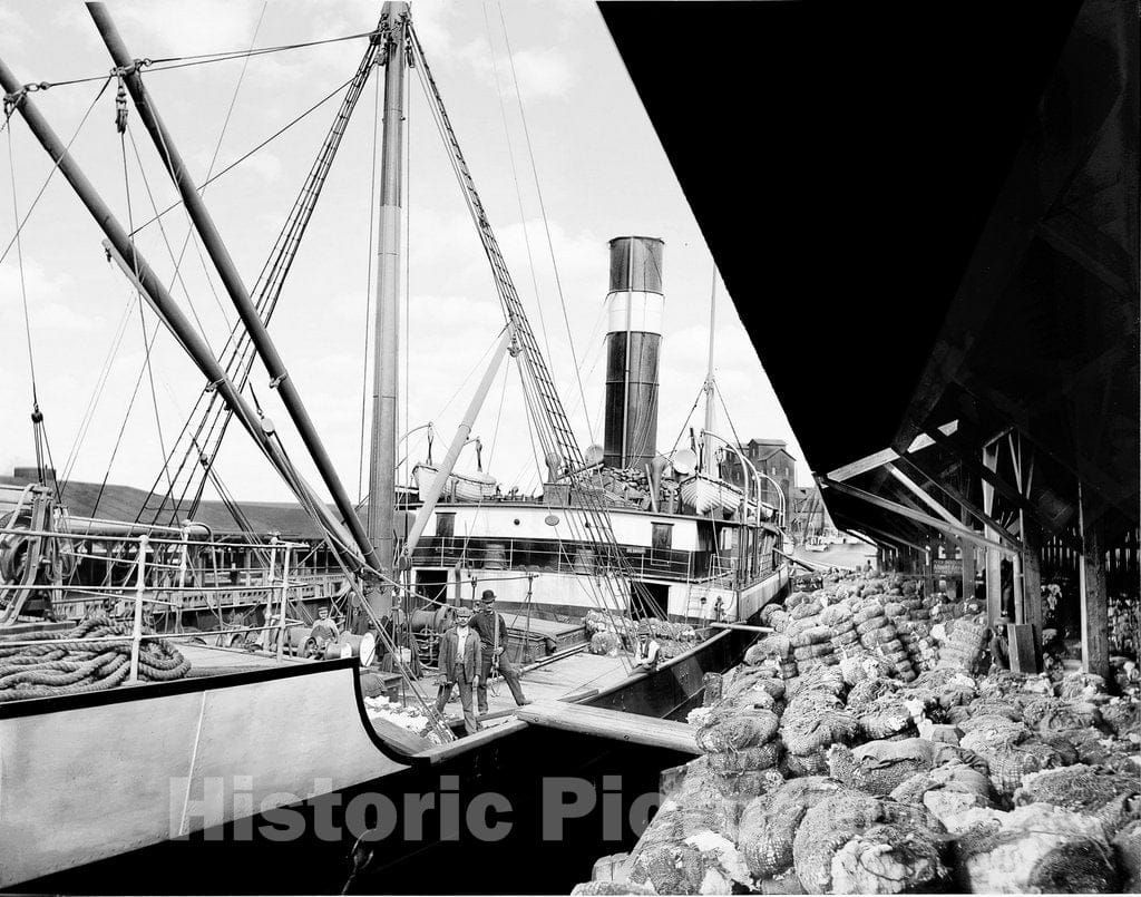 Savannah Historic Black & White Photo, Dock Workers Preparing to Ship Cotton, c1895 -