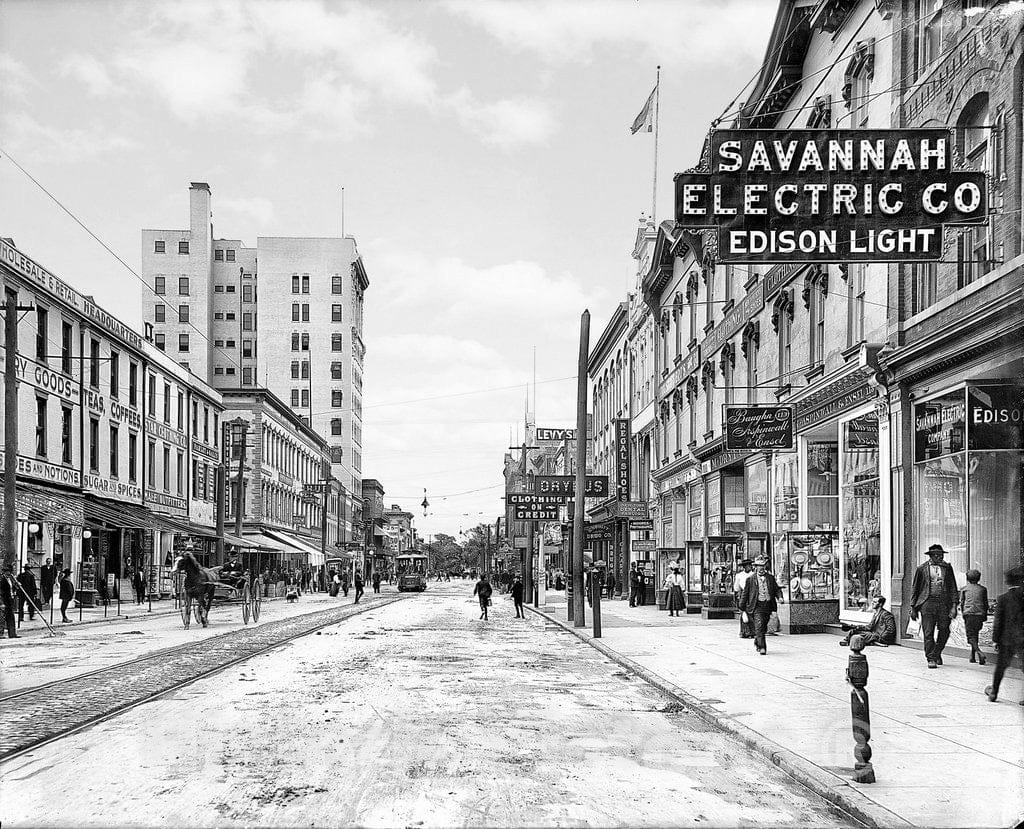 Savannah Historic Black & White Photo, Looking East on Broughton Street, c1904 -