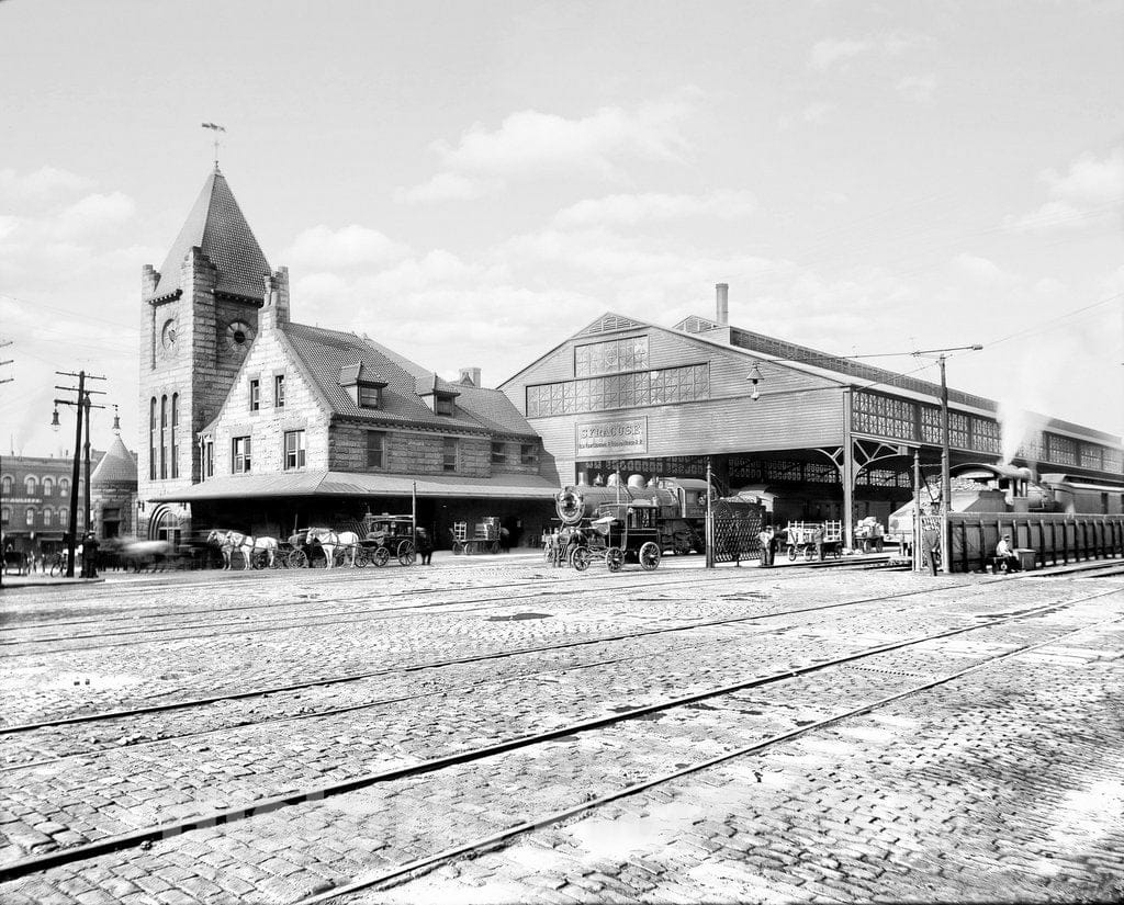 Syracuse Historic Black & White Photo, Behind the New York Central Railroad Depot, c1907 -