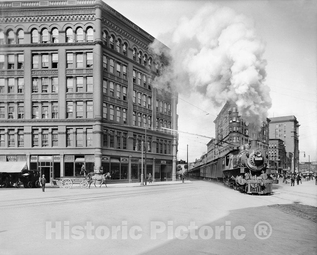 Syracuse Historic Black & White Photo, Empire State Express passing through Washington Street, c1907 -