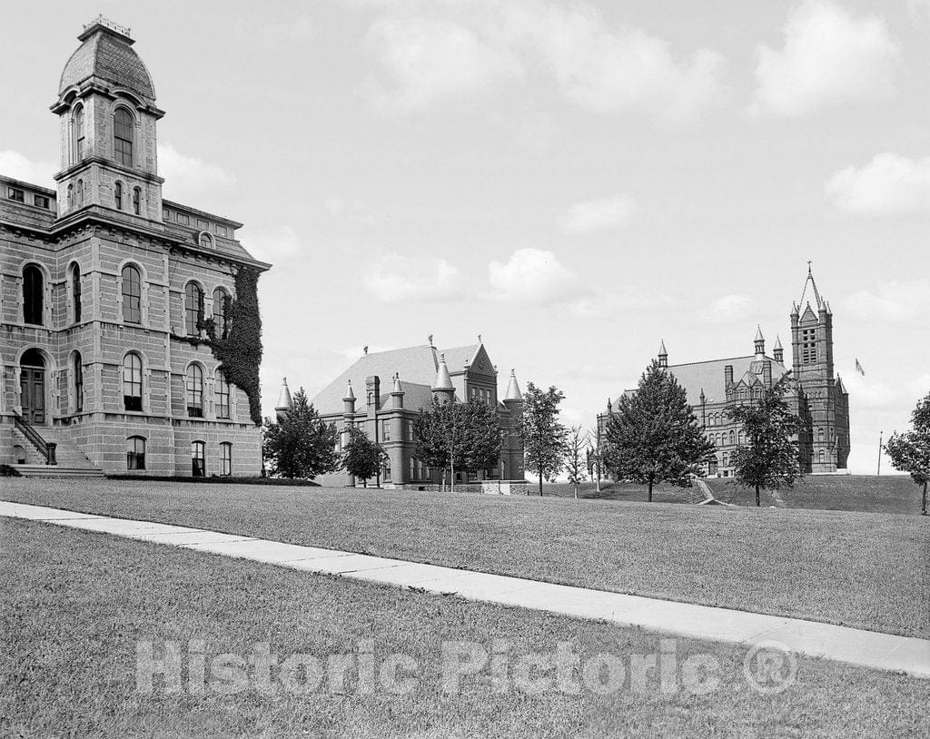 Syracuse Historic Black & White Photo, Hall of Languages and Crouse Hall, Syracuse University, c1895 -