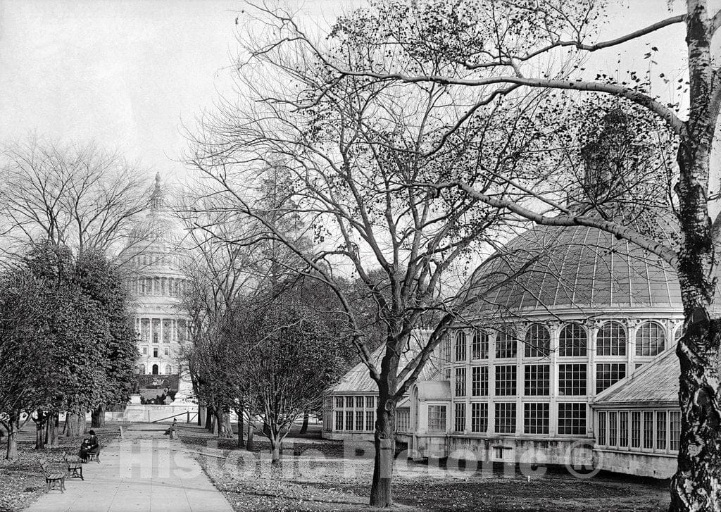 Washington D.C. Historic Black & White Photo, U.S. Botanical Gardens, The Capitol, c1917 -