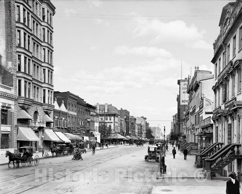 Washington D.C. Historic Black & White Photo, Looking Down F Street, c1906 -