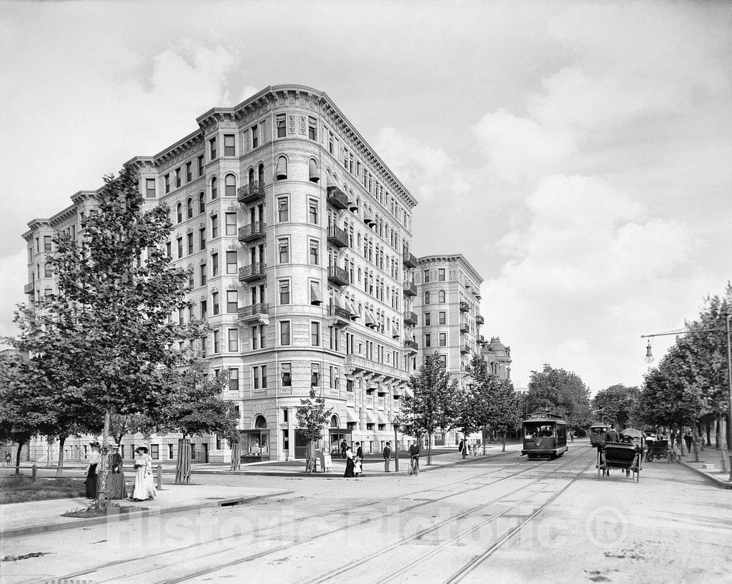 Washington D.C. Historic Black & White Photo, The Stoneleigh Court Apartments, Connecticut & L Streets, c1904 -