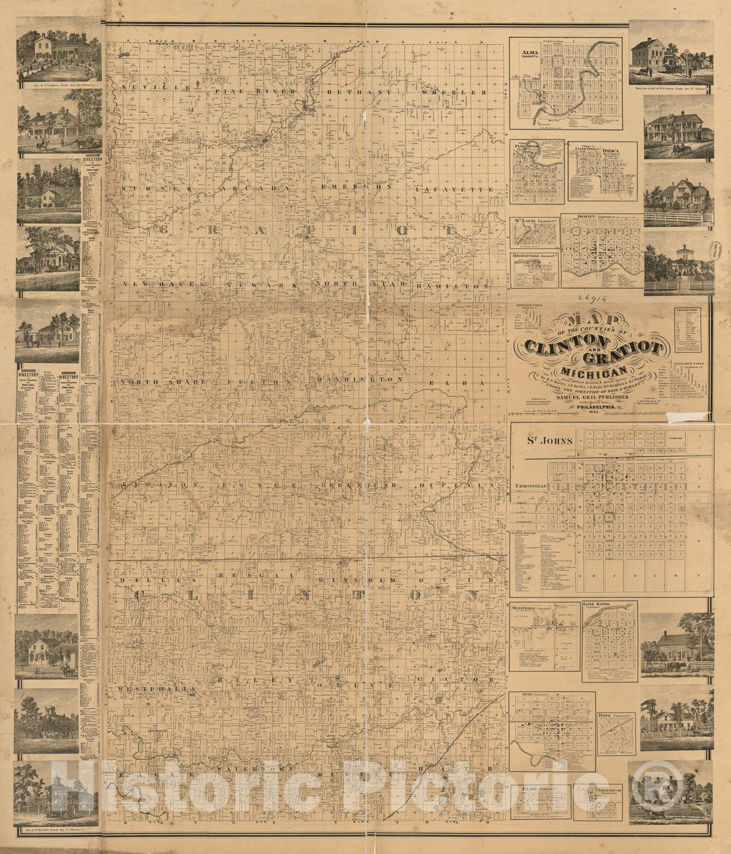 Historic 1864 Map - Map of The Counties of Clinton and Gratiot, Michigan