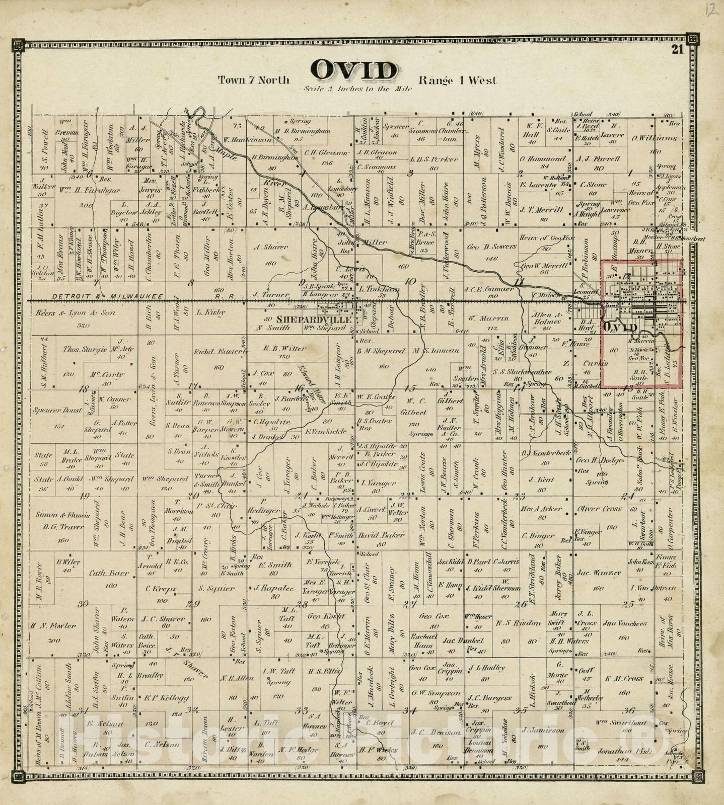 • Historic 1873 Map - Atlas of Clinton County, Michigan - 21: Ovid