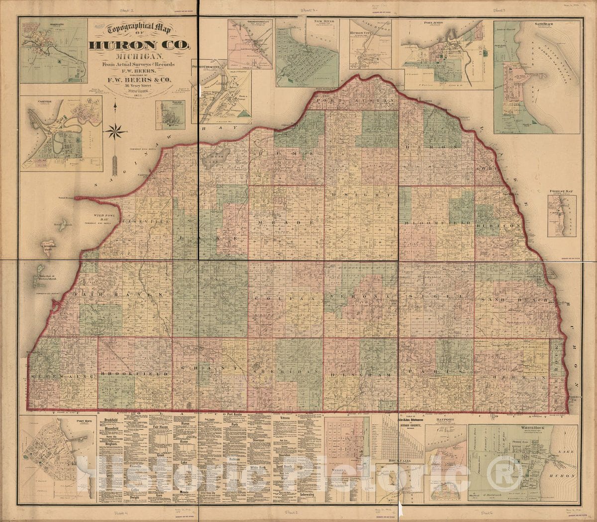 Historic 1875 Map - Topographic map of Huron Co, Michigan