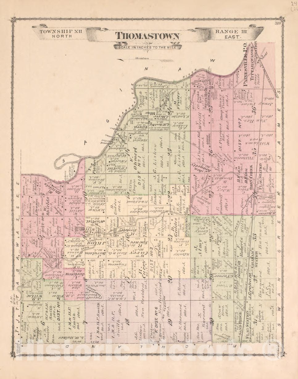 Historic 1877 Map - Atlas of Saginaw Co, Michigan : from Recent and Expected surveys and Records - Part of Carrollton - Atlas of Saginaw County, Mich. 1