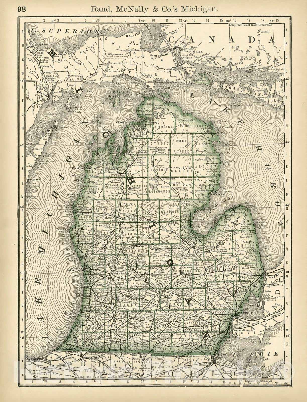 Historic 1878 Map - Rand McNally & Co's Business Atlas - Rand, McNally & Co.'s Michigan -