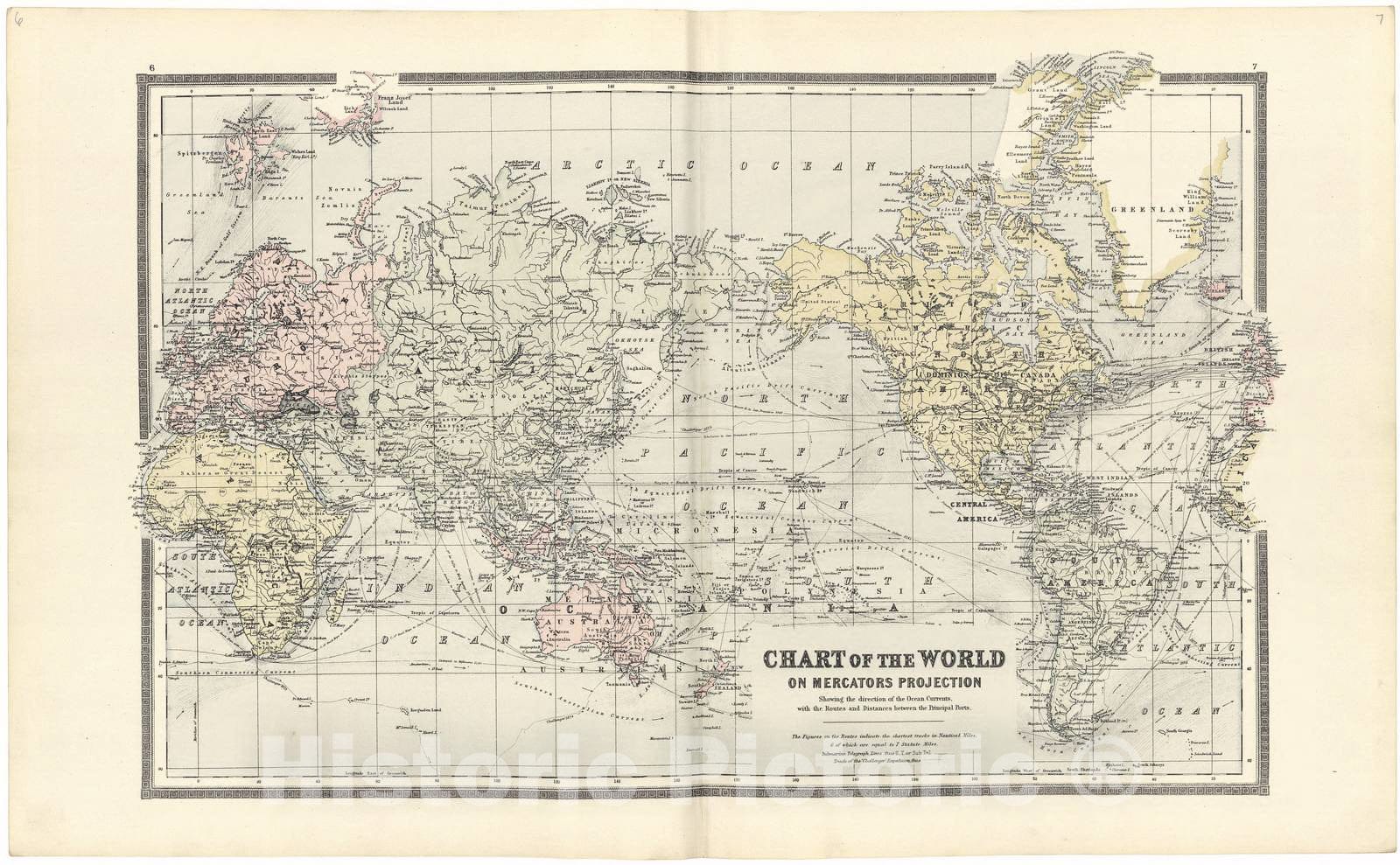 Historic 1893 Map - Atlas and Directory of Lapeer County, Michigan - Chart of The World on Mercators Projection