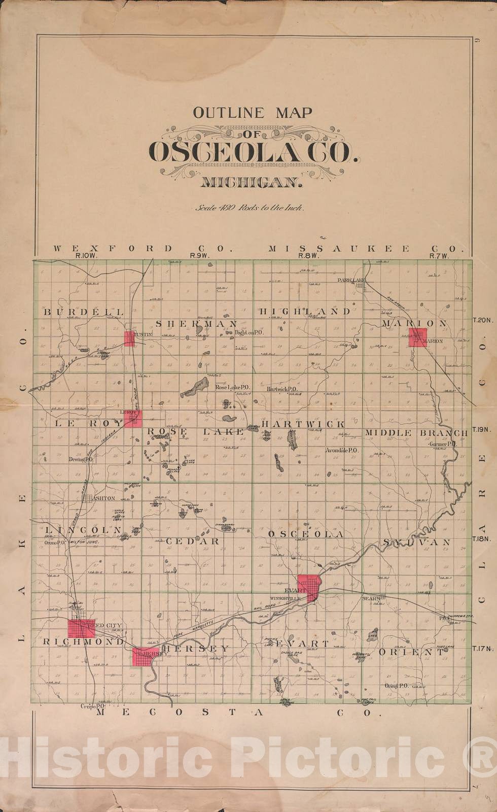 Historic 1900 Map - Plat Book of Osceola County, Michigan - Outline Map of Osceola