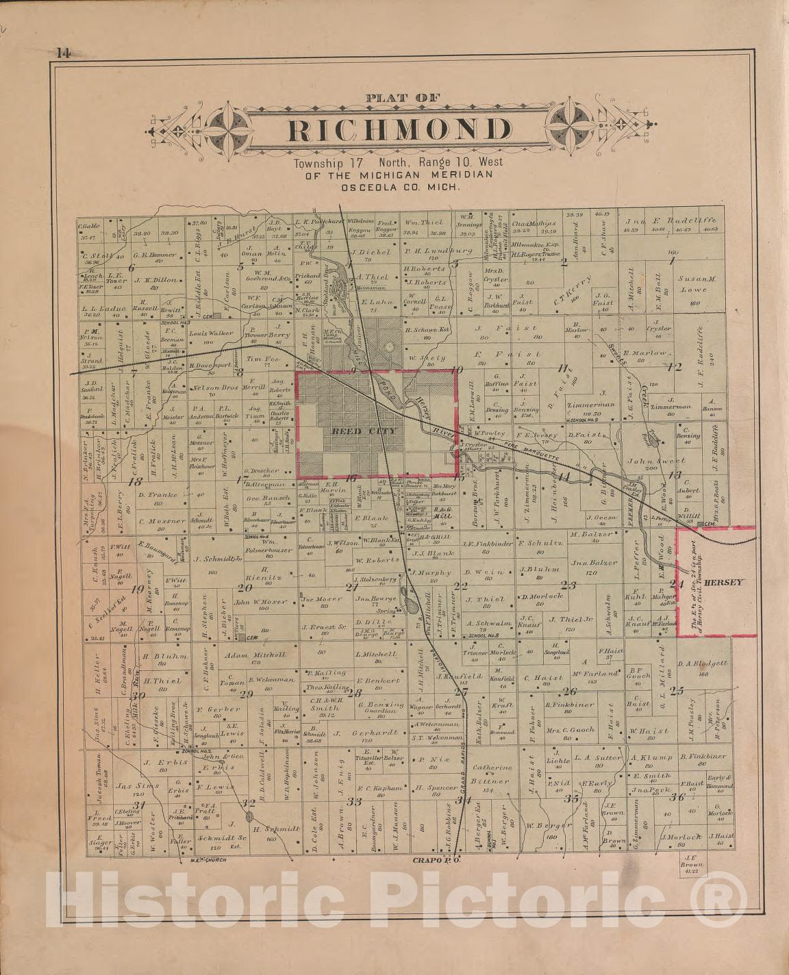 Historic 1900 Map - Plat Book of Osceola County, Michigan - Richmond