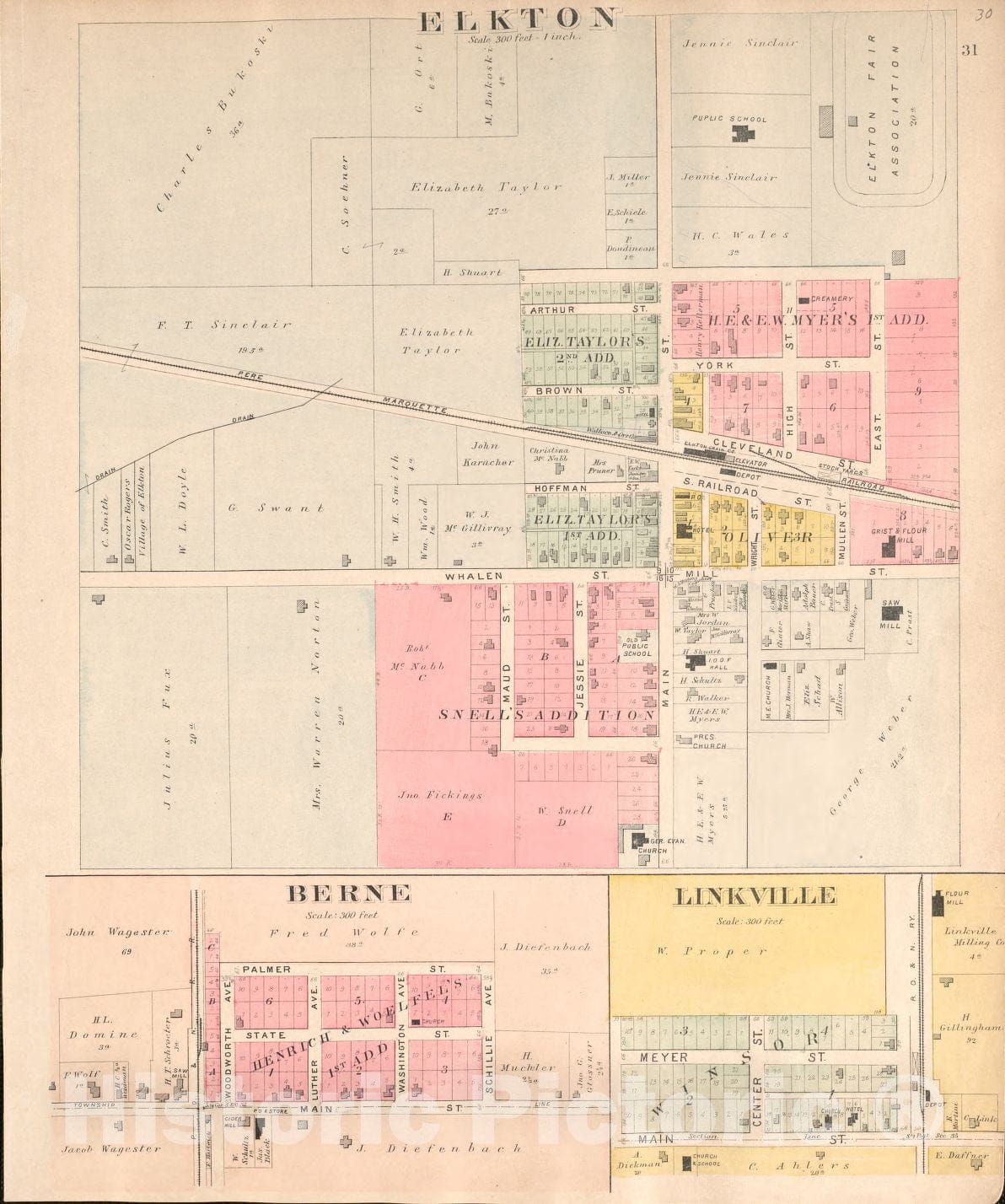 Historic 1904 Map - Plat Book of Huron County, Michigan - Berne, Ekton, Linkville