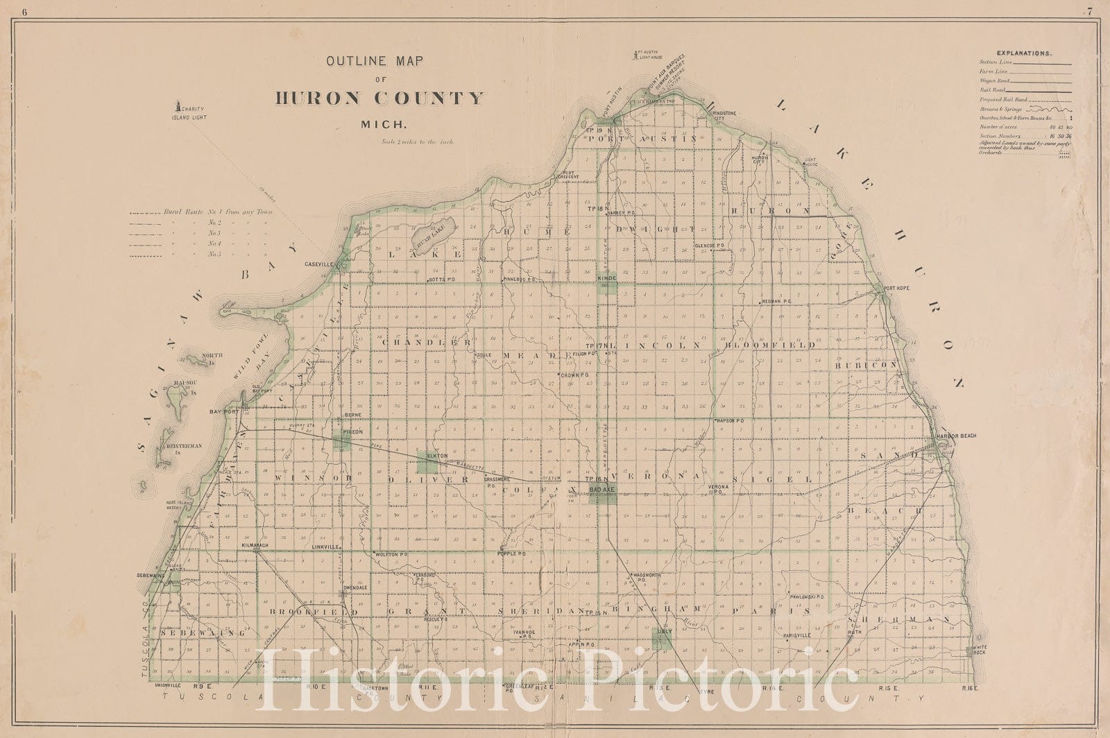Historic 1904 Map - Plat Book of Huron County, Michigan - Outline map of Huron County