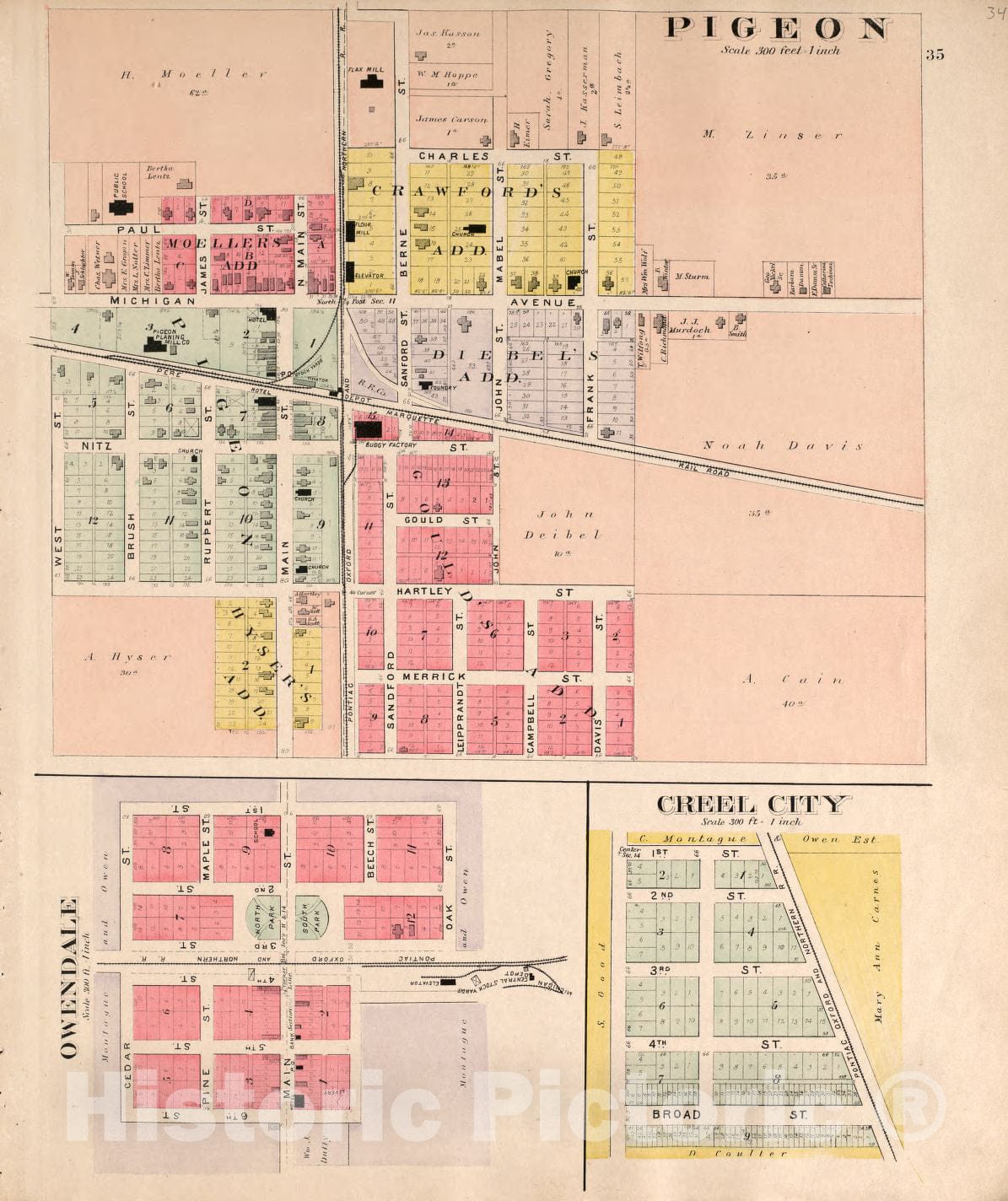 Historic 1904 Map - Plat Book of Huron County, Michigan - Owendale, Pigeon, Creel City