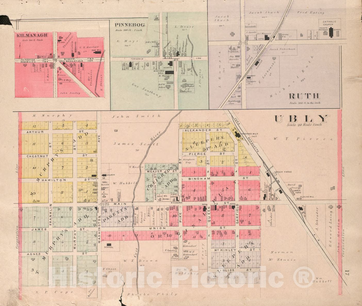 Historic 1904 Map - Plat Book of Huron County, Michigan - Pinnebog, Ruth, Ubly