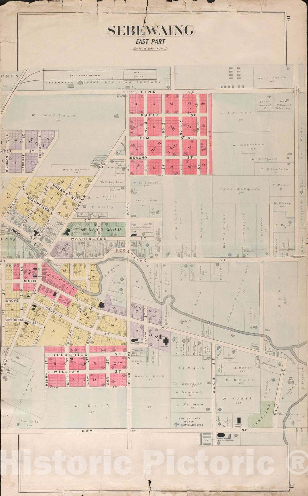 Historic 1904 Map - Plat Book of Huron County, Michigan - Sebewaing- East Part