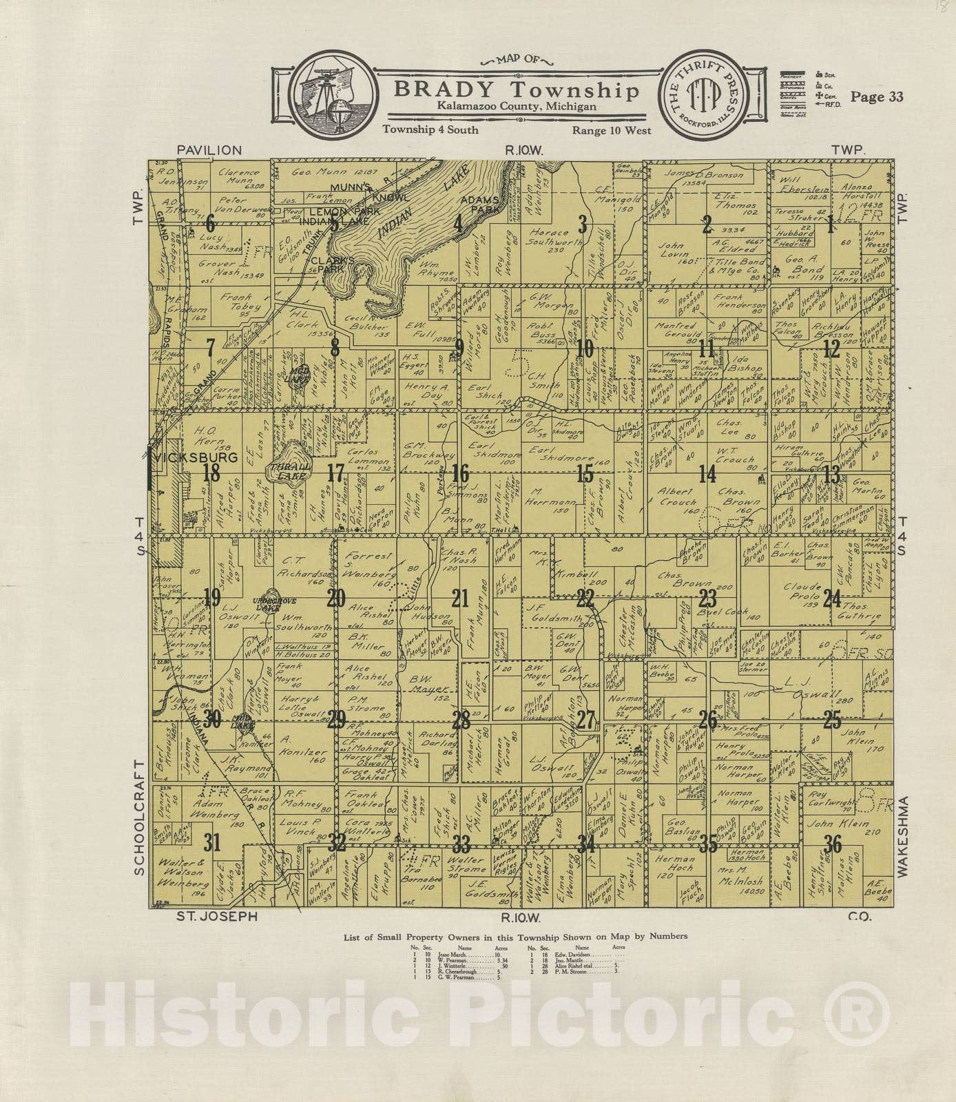 Historic 1928 Map - Plat Book of Kalamazoo County, Michigan - Map of Brady Township - Atlas and plat Book, Kalamazoo County, Michigan