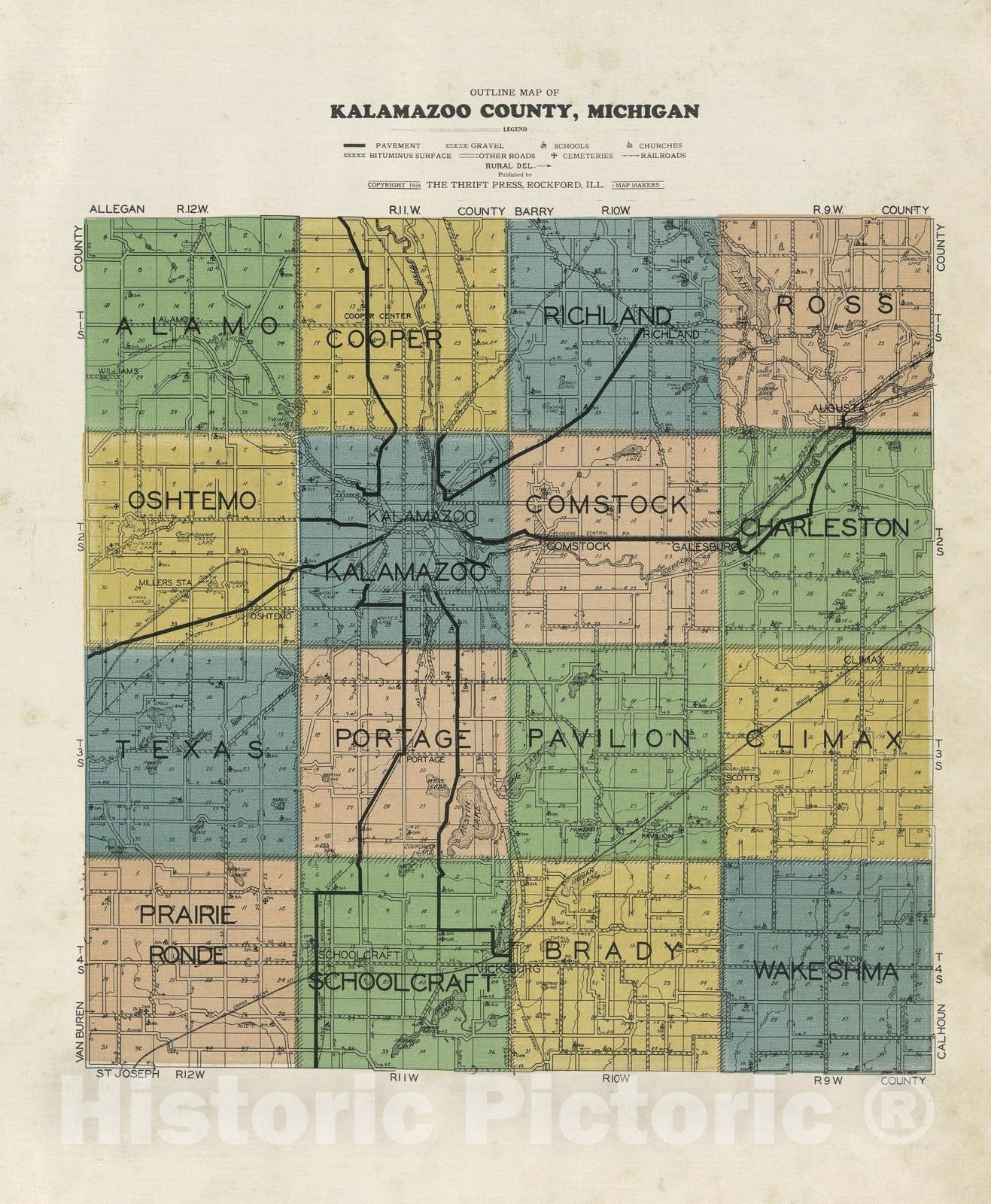 Historic 1928 Map - Plat Book of Kalamazoo County, Michigan - Outline map of Kalamazoo County, Michigan - Atlas and plat Book, Kalamazoo County, Michigan