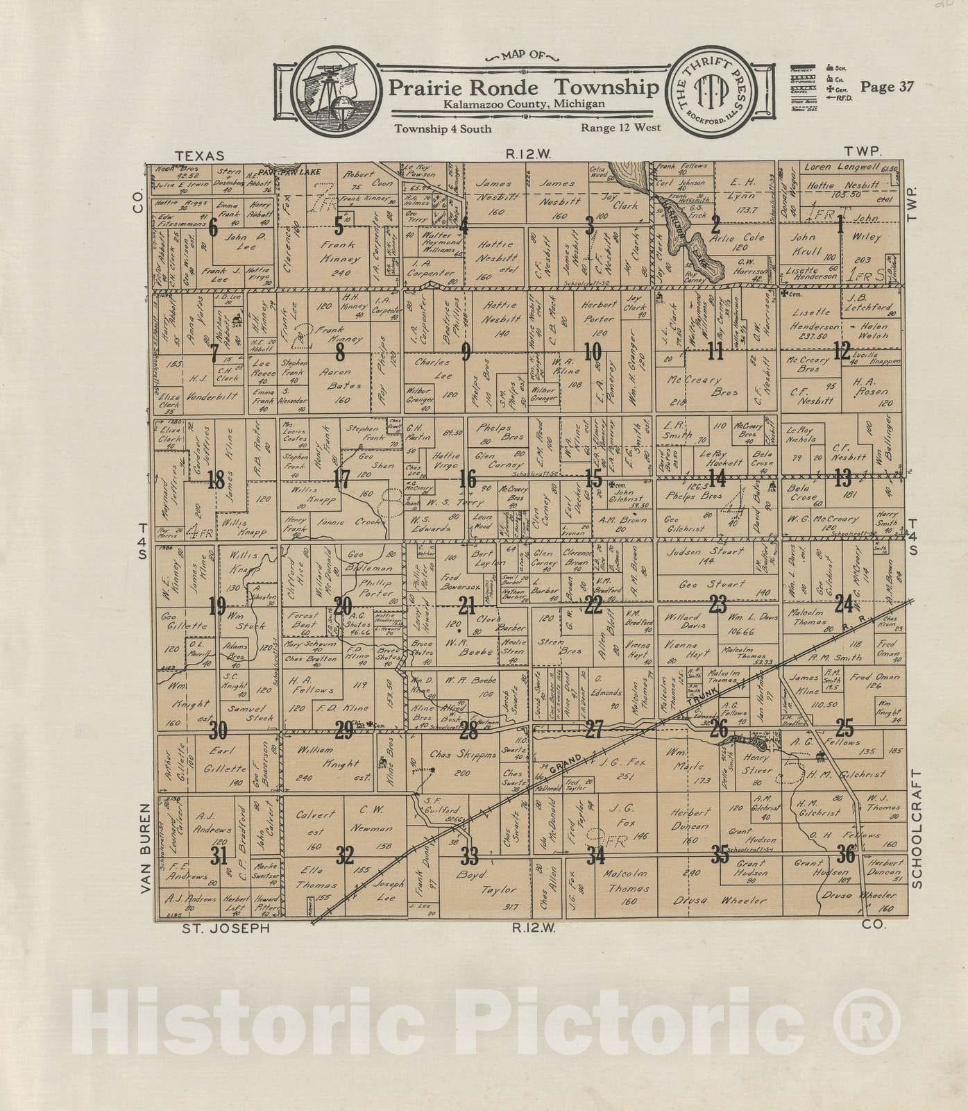 • Historic 1928 Map - Plat Book of Kalamazoo County, Michigan - Map of Prairie Ronde Township - Atlas and plat Book, Kalamazoo County, Michigan