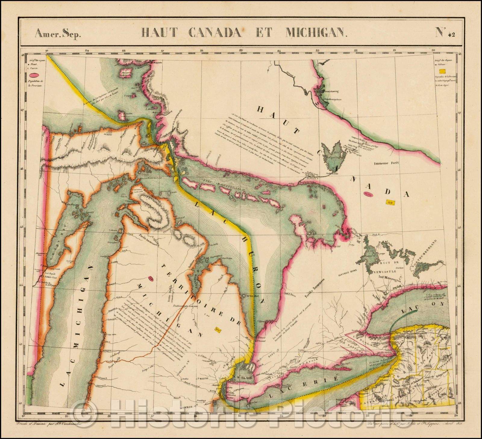 Historic Map - Amer. Sep. No. 42 Haut Canada Et Michigan Michigan, 1825, Philippe Marie Vandermaelen v2