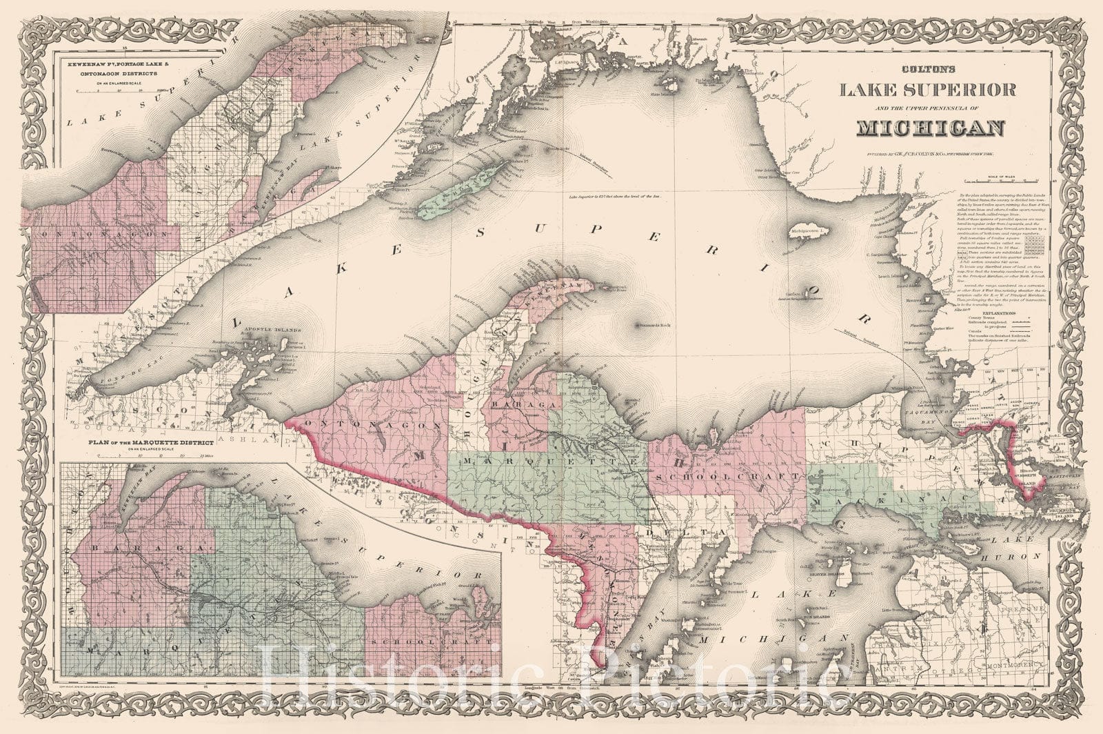 Historic Map : Atlas of the United States. Michigan, Minnesota, and Wisconsin, 1868, Vintage Wall Decor