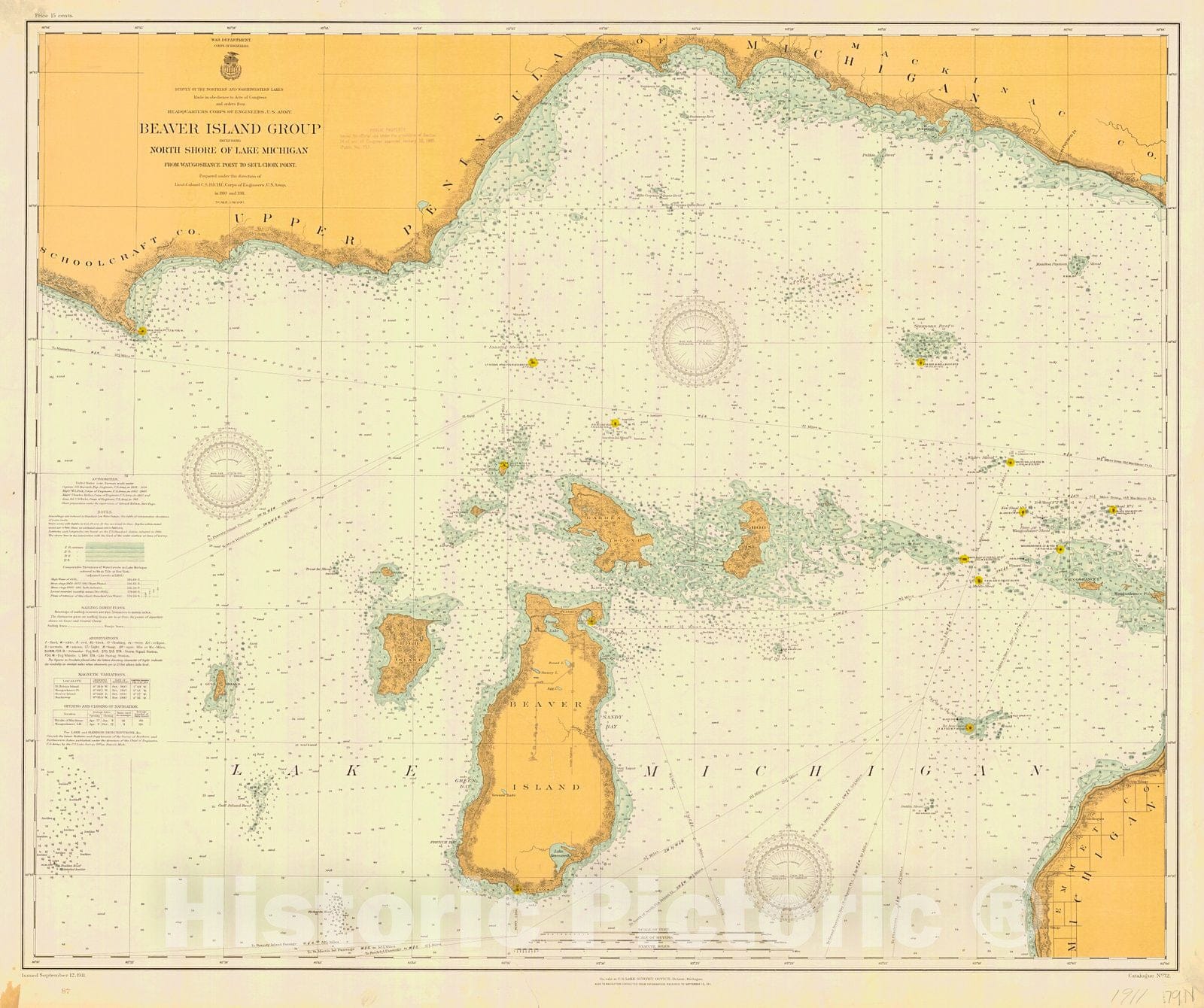 • .Historic Historic Nautical Map - Beaver Island Group Including North Shore Of Lake Michigan From Waugoshance Point To Seul Choix Point, 1911 NOAA Chart - Antique Vintage Decor Poster Wall Art Reproduction